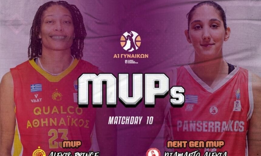 Από το ντέρμπι Αθηναϊκός Qualco – Ολυμπιακός αναδείχθηκε η MVP της 10ης Αγωνιστικής στο πρωτάθλημα της Α1 Γυναικών με την Αλέξις Πρινς να κερδίζει την διάκριση, ενώ MVP Next Gen είναι η Διαμάντω Αλεξιά του Πανσερραϊκού που έφτασε σε double double.