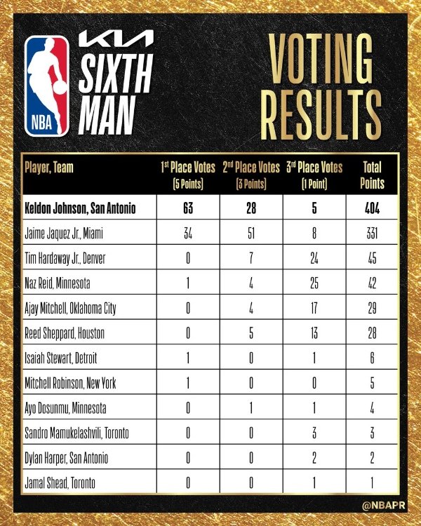 Ο Κέλντον Τζόνσον κατέκτησε το βραβείο του καλύτερου έκτου παίκτη για τη σεζόν 2025-26 στο NBA, επιβεβαιώνοντας την εξαιρετική του χρονιά με τη φανέλα των Σαν Αντόνιο Σπερς.