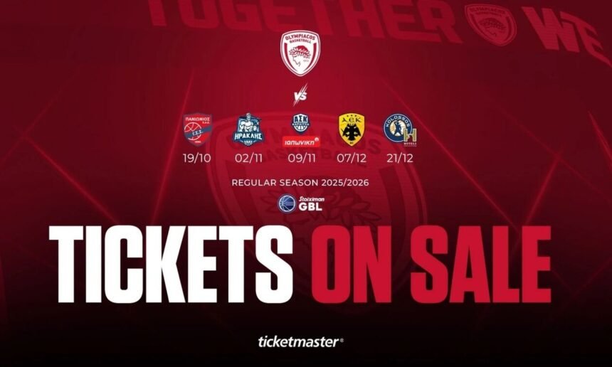 Η Κ.Α.Ε. ΟΛΥΜΠΙΑΚΟΣ ανακοινώνει ότι ξεκίνησε η διάθεση των εισιτηρίων για όλους τους εντός έδρας αγώνες της STOIXIMAN GBL μέχρι το τέλος του Δεκεμβρίου.