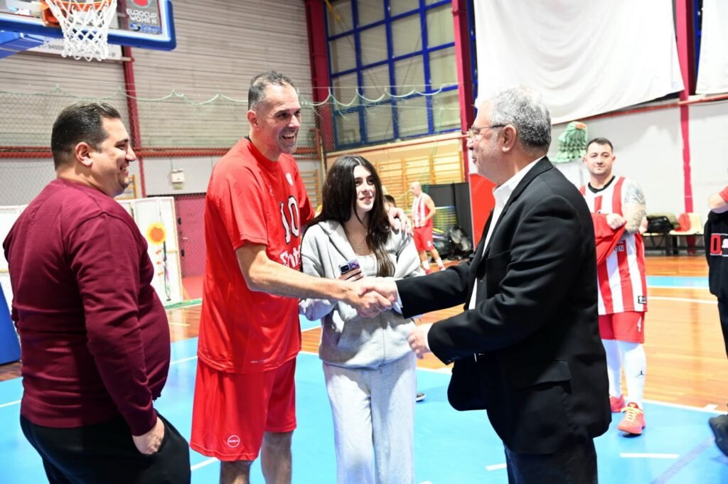 Η εκδήλωση στο Κλείστο Γυμναστήριο του Μοσχάτου ξεκίνησε στις 7, ενώ οι δύο ομάδες έπαιξαν δύο 20λεπτα. Στον αγώνα παρεβρέθηκαν σημαντικά πρόσωπα της πολιτικής σκηνής όπως ο Δήμαρχος Μοσχάτου, Ανδρέας Ευθυμίου και ο υφυπουργός εσωτερικών, Βασίλης Σπανάκης.