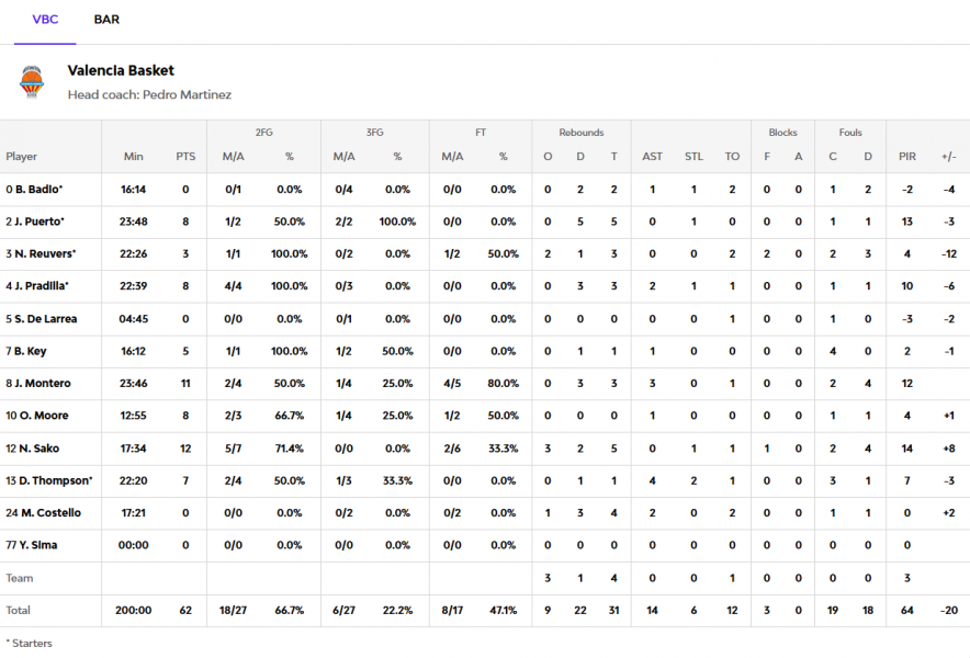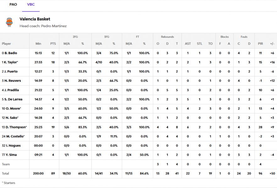 Ακόμα πιο ανησυχητικό είναι το κομμάτι των επιθετικών ριμπάουντ. Η Βαλένθια πήρε 13 και 14 αντίστοιχα στα δύο παιχνίδια, εξασφαλίζοντας πολλές δεύτερες επιθέσεις και αυξάνοντας σημαντικά τις κατοχές της.