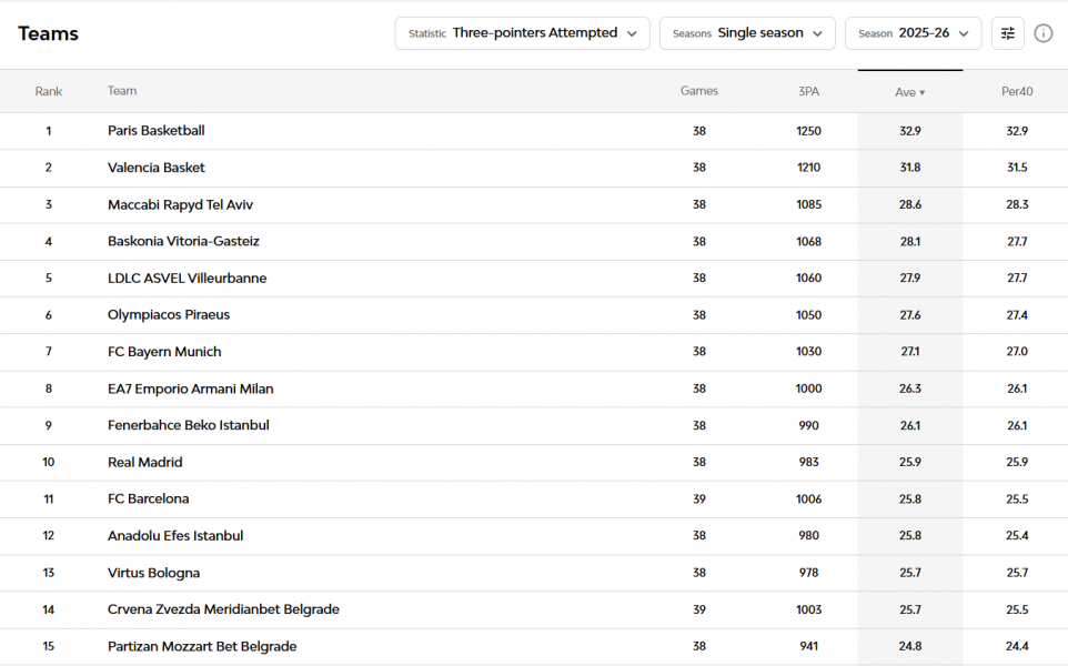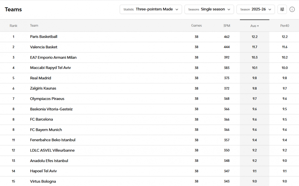 Αν το ριμπάουντ δίνει τις βάσεις, το περιφερειακό σουτ είναι αυτό που «εκτελεί». Η Βαλένθια συγκαταλέγεται στις πιο παραγωγικές ομάδες έξω από τα 6,75μ., με σχεδόν 32 προσπάθειες ανά παιχνίδι και υψηλή αποτελεσματικότητα.