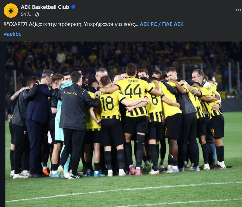 Το μήνυμα της μπασκετικής ΑΕΚ αναφέρει: “ΨΥΧΑΡΕΣ! Αξίζατε την πρόκριση. Υπερήφανοι για εσάς”